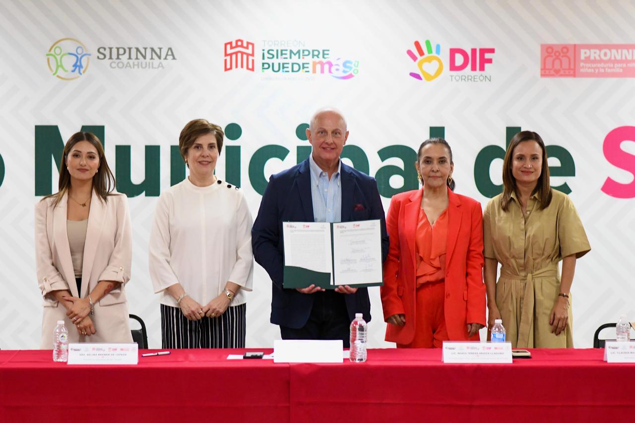 El Consejo quedó integrado por: Román Alberto Cepeda González, alcalde de Torreón y presidente el Consejo; Selina Bremer de Cepeda, presidenta Honoraria del DIF Torreón; Maria Teresa Araiza Llaguno, Procuradora para niños, niñas y la familia del Estado de Coahuila; Karla Liliana Centeno Félix, presidenta de la Comisión de DIF Torreón; Mayra López Guajardo, Directora de SIPINNA Coahuila; José Elías Ganem Guerrero, Secretario del Ayuntamiento de Torreón; Oscar Gerardo Luján Fernández, Tesorero Municipal; comisario Alfredo Flores Originales, Director General de Seguridad Pública Municipal de Torreón; Lorena Safa Serrato, Coordinadora DIF Coahuila Región Laguna; Eleazar Jovanny Gómez Rivas, Procurador para niños, niñas y la Familia del Municipio de Torreón; Martha Esther Rodríguez Romero, directora del Centro de Justicia Municipal; Flor Estela Rentería Medina, Coordinadora de Servicios Educativos Región Laguna; José Manuel Riveroll Duarte, director de Salud Municipal; Amira Lucia Darwich García, Directora General del Instituto Municipal de la Mujer; Antonio Edmundo Méndez Vigatá, Director del Instituto Municipal de Cultura y Educación; Elías Ramón Chufani Vázquez, Director del Instituto Municipal del Deporte; Blanca Álvarez Garza, Directora de la Unidad de Prevención Social de la Violencia; Joaly Jaqueline López García, titular de la Unidad Municipal Derechos Humanos; María Gloria de la Rosa Castelo, Directora de Casa de Beneficencia de Torreón A.C.; Beatriz Villarreal de Meza, representante Legal de Centro Educativo de la Niñez Torreonense; Ana Cristina Chávez Briones, en representación de Rosaura de Belém Estrella Rivera, Representante Legal de Casa Hogar Abrázame A.C.; Estrella Zamira Cardona Belmares, subprocuradora para Niños Niñas y la Familia Región Laguna; María del Refugio Mendoza Guerrero, en representación de Cecilia Marroquín Lavín, representante Legal de Grupo Encendamos una Luz. Marlene Martínez Valdés, Directora General de DIF Torreón y Secretaria Técnica Consejo SIPINNA.