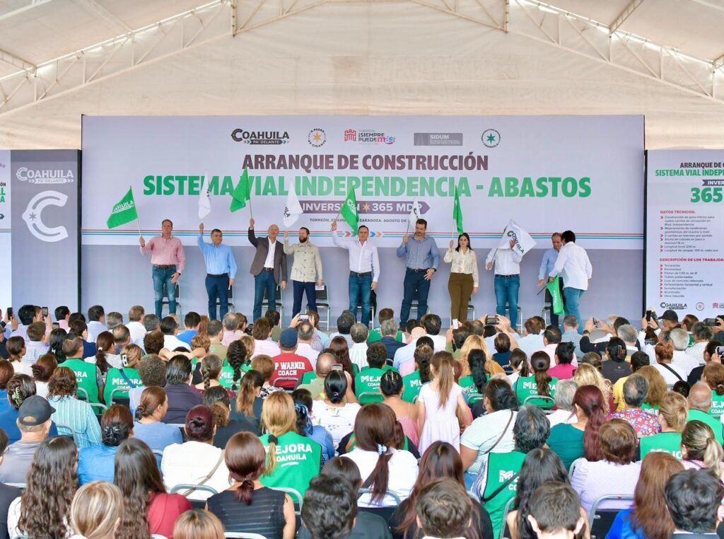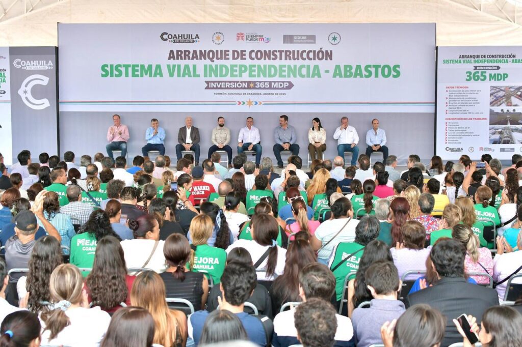 Con una inversión de 365 millones de pesos, el gobernador de Coahuila Manolo Jiménez Salinas y el alcalde Román Alberto Cepeda González dieron el banderazo de arranque de la construcción del Sistema Vial Independencia- Abastos, un proyecto integral que no sólo mejorará la circulación vehicular, sino que fortalecerá el drenaje pluvial en esta parte de la ciudad en beneficio de los y las torreonenses.