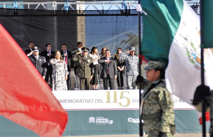Con una asistencia de cerca de 20 mil personas, la mañana de este lunes se realizó en Torreón el desfile cívico militar con motivo del 115 aniversario del inicio de la Revolución Mexicana, con la participación de autoridades de los tres niveles de Gobierno.