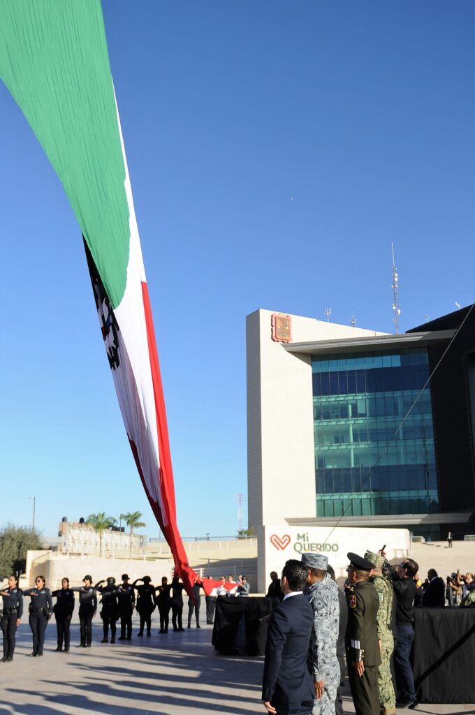 En el acto cívico se realizaron los honores al lábaro patrio, con la participación de la banda de guerra del 33 batallón de infantería, para posteriormente izar la bandera nacional de la Plaza Mayor y dar paso al desfile integrado por 4 mil 706 personas.