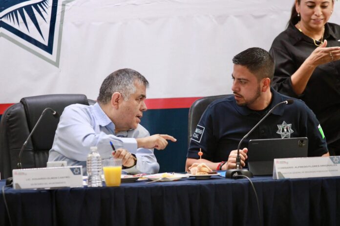 Durante la trigésima octava reunión semanal de seguridad, presidida en representación del alcalde Román Alberto Cepeda González, por el secretario del Ayuntamiento, Eduardo Olmos Castro, se contó con la presencia del coronel de artillería del Estado Mayor, Omar León Arroyo, comandante del Mando Especial de La Laguna, con quien se reforzó la coordinación entre los tres órdenes de Gobierno.