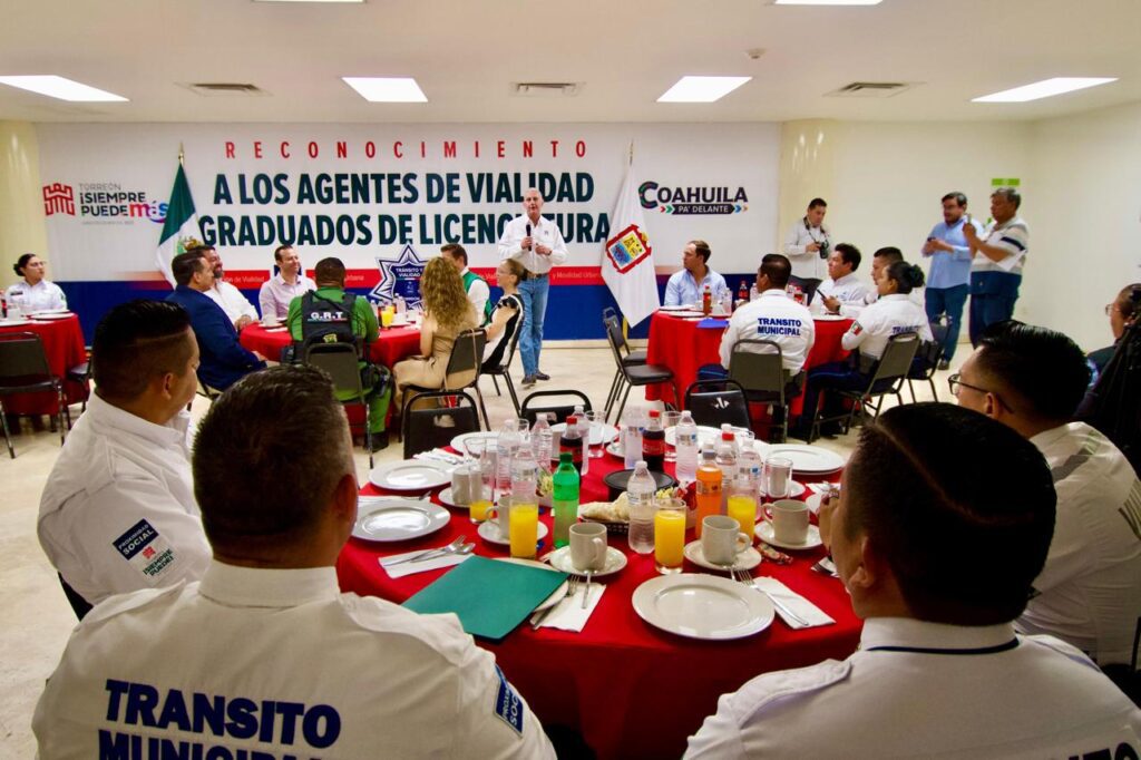 Hugo Dávila Prado, coordinador de Mejora Coahuila en Torreón, agregó que concluir sus estudios refleja el gran esfuerzo de cada uno de los elementos, y demuestra que nunca es tarde para seguirse preparando.