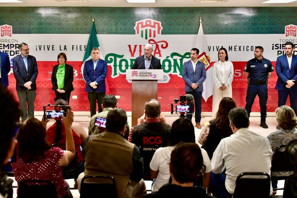 El alcalde Román Alberto Cepeda González, presidió este lunes la ceremonia de Izamiento de la Bandera Nacional en la explanada de la Plaza Mayor, en el marco del inicio de las fiestas patrias por la Independencia de México y del 118 aniversario de la fundación de la ciudad de Torreón.