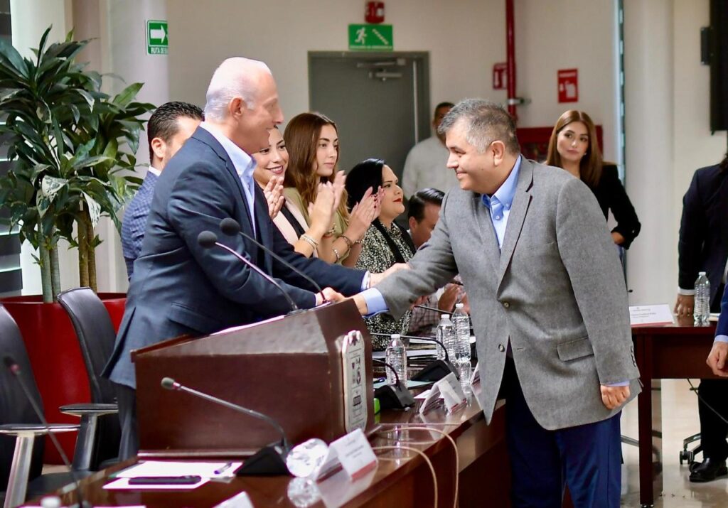 El alcalde Román Alberto Cepeda González tomó protesta a Eduardo Olmos Castro como secretario del Ayuntamiento; Óscar Gerardo Luján Fernández como nuevo titular de la Contraloría Municipal; y Javier Lechuga Jiménez como Tesorero Municipal, designaciones que fueron previamente aprobadas de manera unánime durante la Décima Quinta Sesión Ordinaria de Cabildo que se realizó ayer viernes.