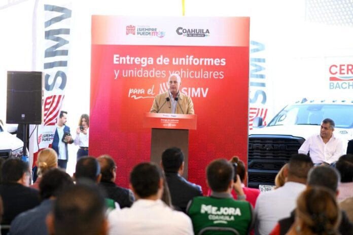Con una inversión superior a los 5 millones de pesos, este viernes el acalde Román Alberto Cepeda González y Hugo Dávila Prado, coordinador de Mejora Coahuila en Torreón, en representación del gobernador Manolo Jiménez Salinas, entregaron uniformes y unidades vehiculares al Sistema Integral de Mantenimiento Vial (SIMV).