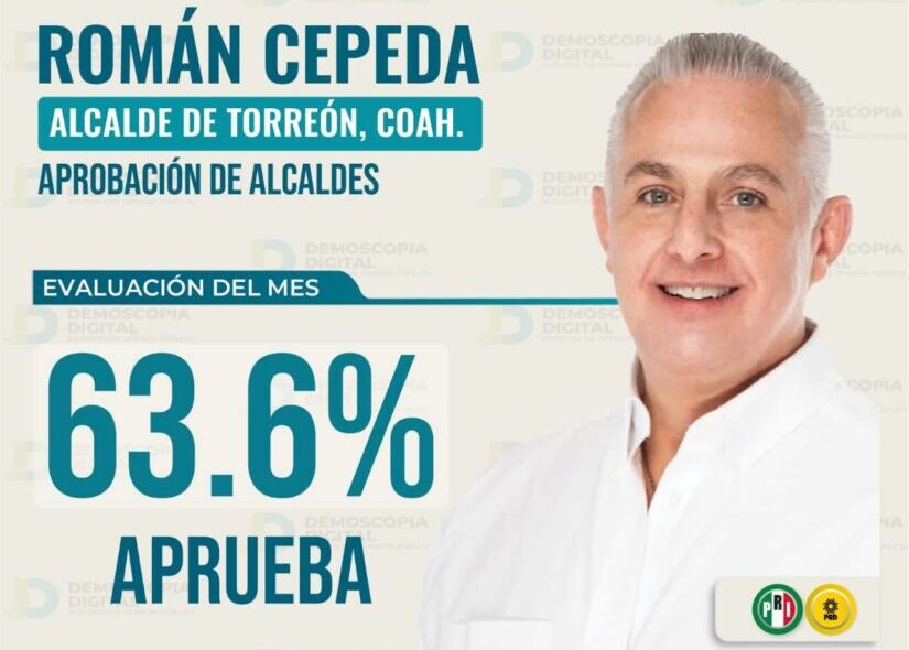 Con una aprobación del 63.6 por ciento, el alcalde reelecto de Torreón, Román Cepeda González, se posicionó como el mejor evaluado durante el pasado mes de septiembre, de acuerdo con la casa encuestadora Demoscopia Digital y el diario La Jornada.