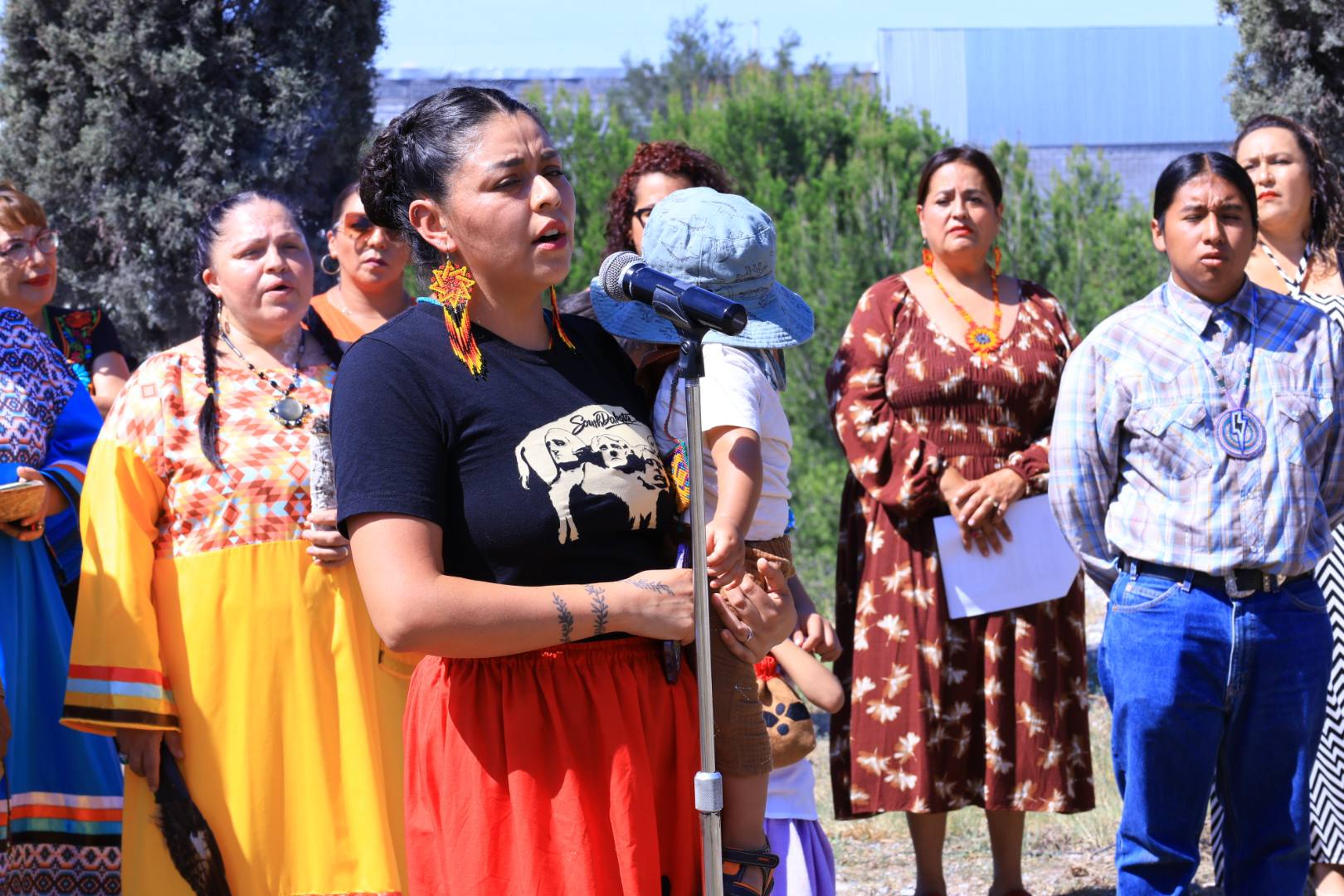 También se contó con la presencia de la Comunidad Zapalinamé, en representación de la Tribu Lakota de la familia Crow Dog de South Dakota, quienes compartieron con generosidad momentos de sabiduría y tradición que enriquecieron profundamente la ceremonia. Asimismo, se llevaron a cabo lecturas en honor a las escritoras de los pueblos originarios, cuyas voces transmiten memoria, resistencia y esperanza. Agradecemos la participación de las maestras Claudia Castillo, Adriana Ramírez, Elvira Quintero, Gloria Luna y Flor Villalva, quienes dieron vida a esas palabras.