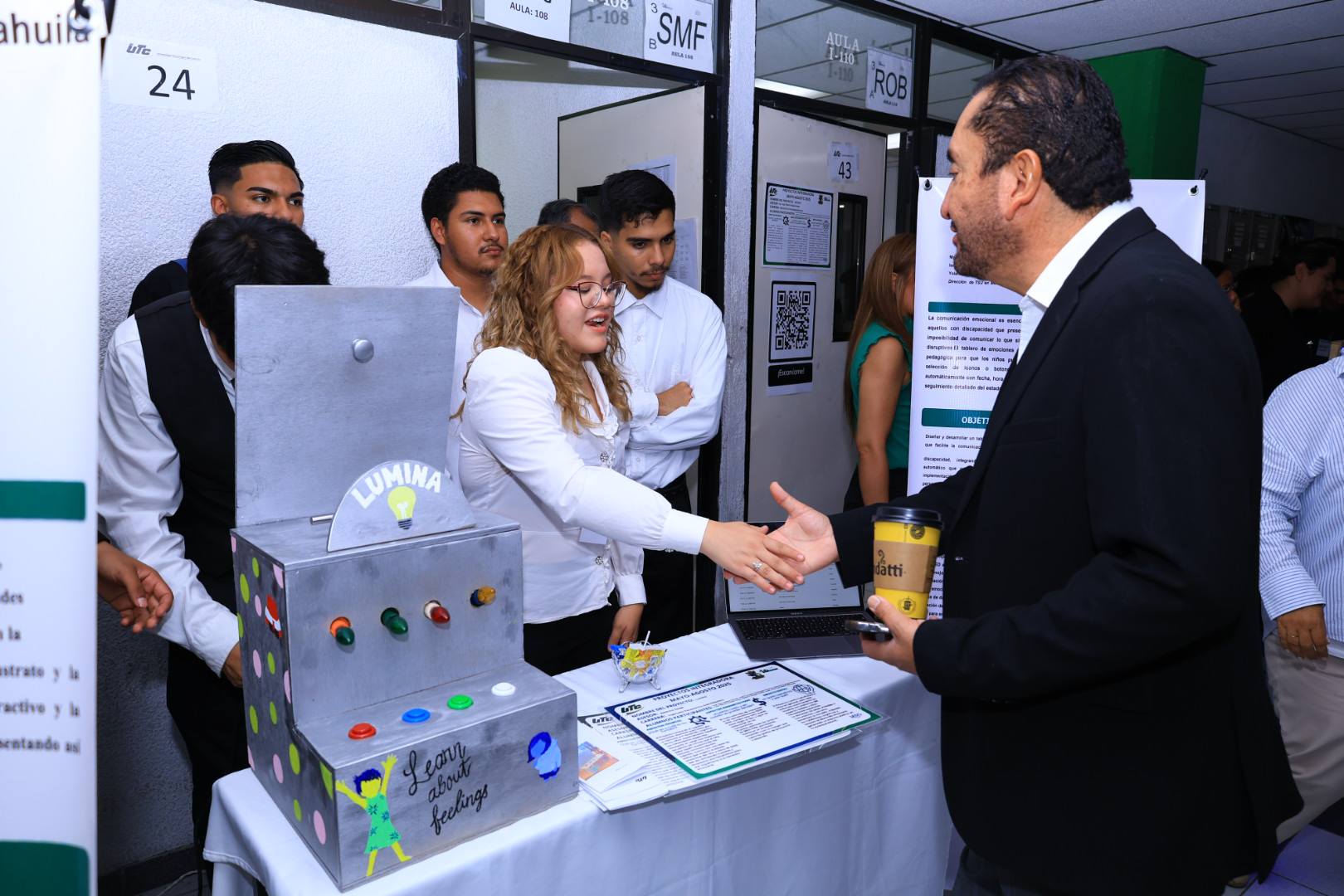 La Universidad Tecnológica de Coahuila llevó a cabo con gran éxito la Muestra de Proyectos de la materia Integradora de la carrera de Mecatrónica, en la cual los estudiantes presentaron un total de 49 proyectos en el turno matutino y 6 en el turno vespertino.