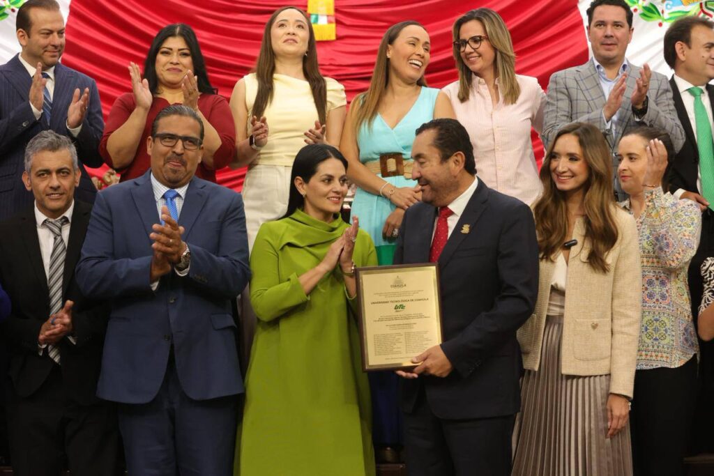 En el marco de su 30º aniversario, la Universidad Tecnológica de Coahuila fue honrada con una emotiva distinción por parte de las diputadas y diputados integrantes de la LXIII Legislatura del H. Congreso del Estado Independiente, Libre y Soberano de Coahuila de Zaragoza, quienes entregaron una placa conmemorativa que destaca la trayectoria de la institución.